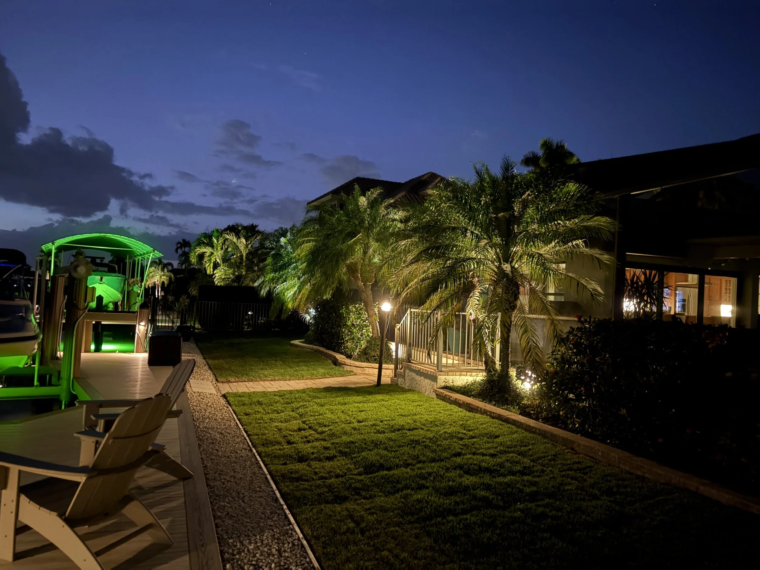Lush tropical landscaping - Mature Palms and Plantings, Recently added Zoysia Grass and White Rock Hardscaping